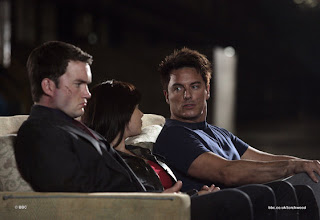 but this is no time to pout. torchwood's assets are down to a couple of guns, a now-dead laptop, some contact lenses, and not much else. the software's still on the server ... if only they had some computer equipment. and power. and proper trousers.